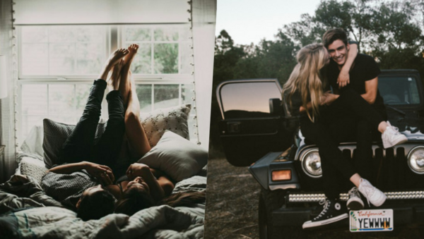 情侶散步拍照