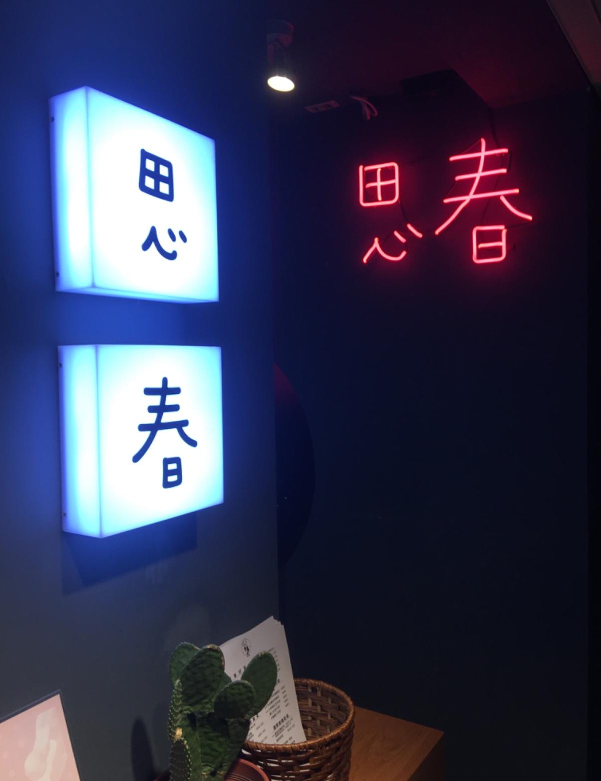 店面旁邊還有一小塊空間可以讓大家拍照,有霓虹燈顯眼的「思春」招牌,當然要來拍幾張照片!