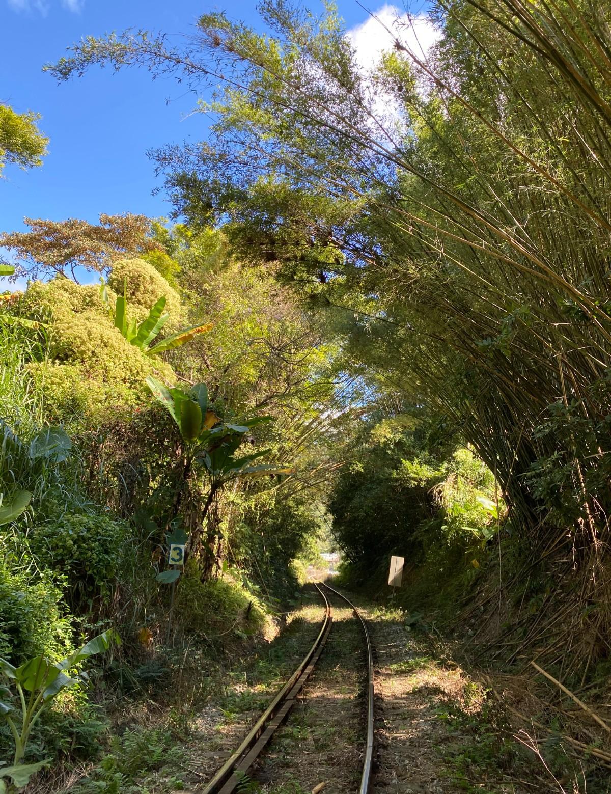 小火車呼呼的經過,注意左右兩邊來車