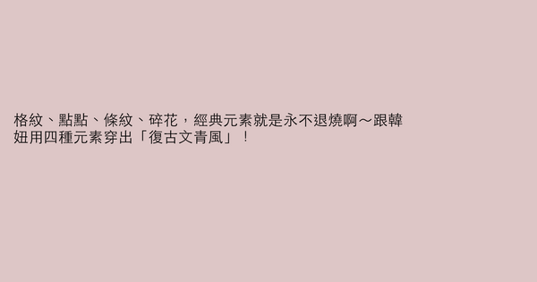 格紋、點點、條紋、碎花,經典元素就是永不退燒啊~跟韓妞用四種元素穿出「復古文青風」!