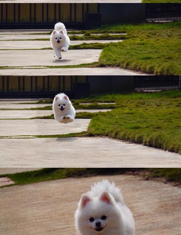 有一隻領養的小博美叫哺哺