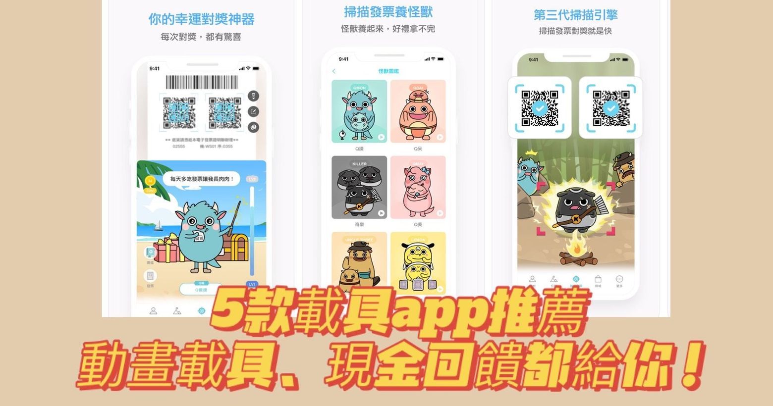 別再用紙本發票了!!5款載具app推薦!動畫載具、現金回饋都給你!