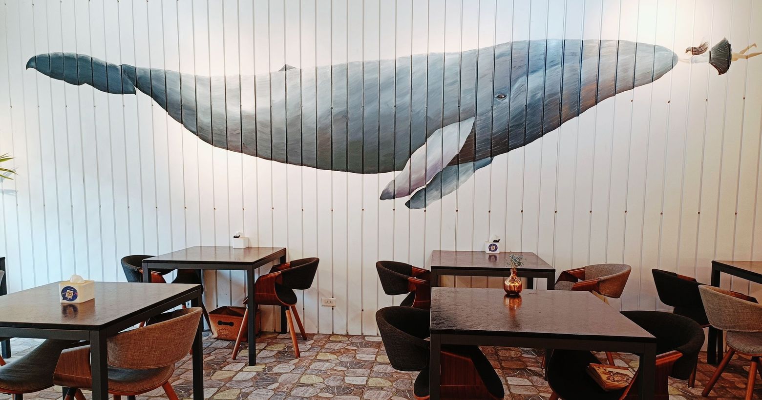 新竹美食。 52赫茲咖啡Hertz Café 療癒系藍鯨牆/烤飯糰/伯爵磅蛋糕美食讓我們不在孤獨