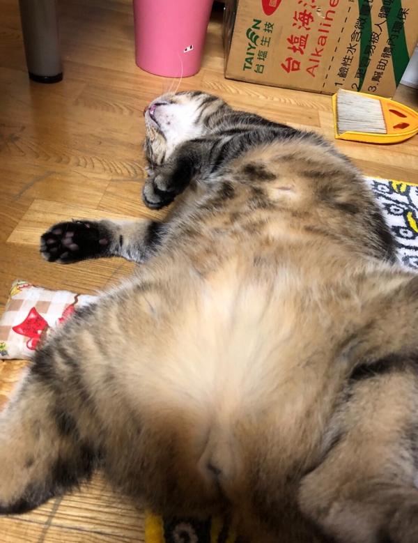 養了一隻很愛站著的貓