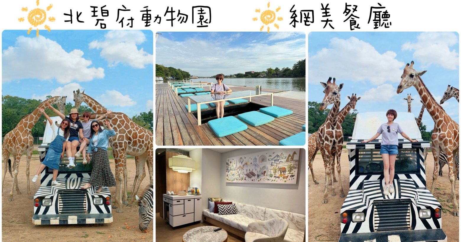 【凱特旅遊】泰國曼谷自由行DAY3。包車一日遊。北碧府動物園和長頸鹿合照。Tongkan Café網美風桂河畔餐廳